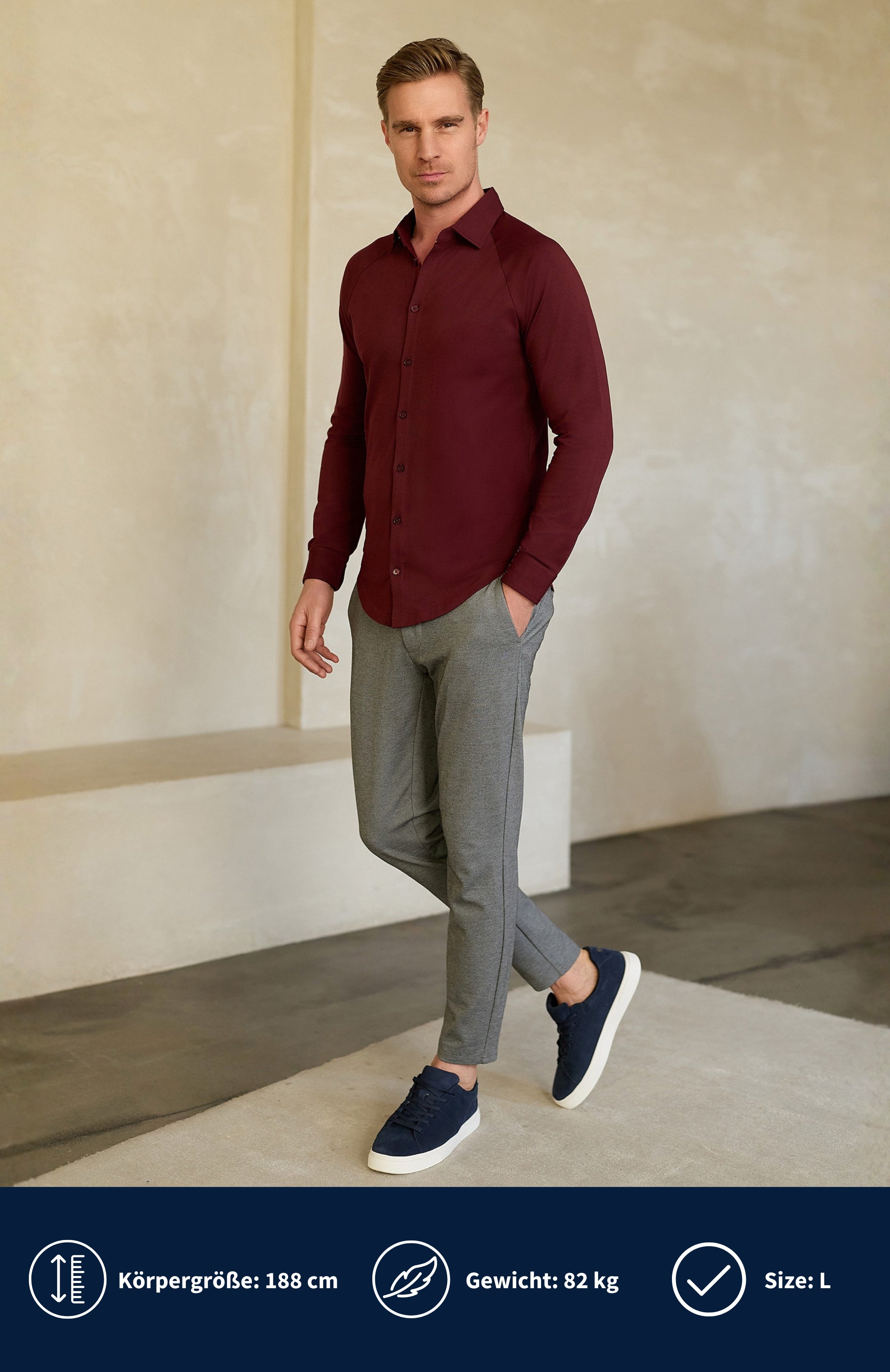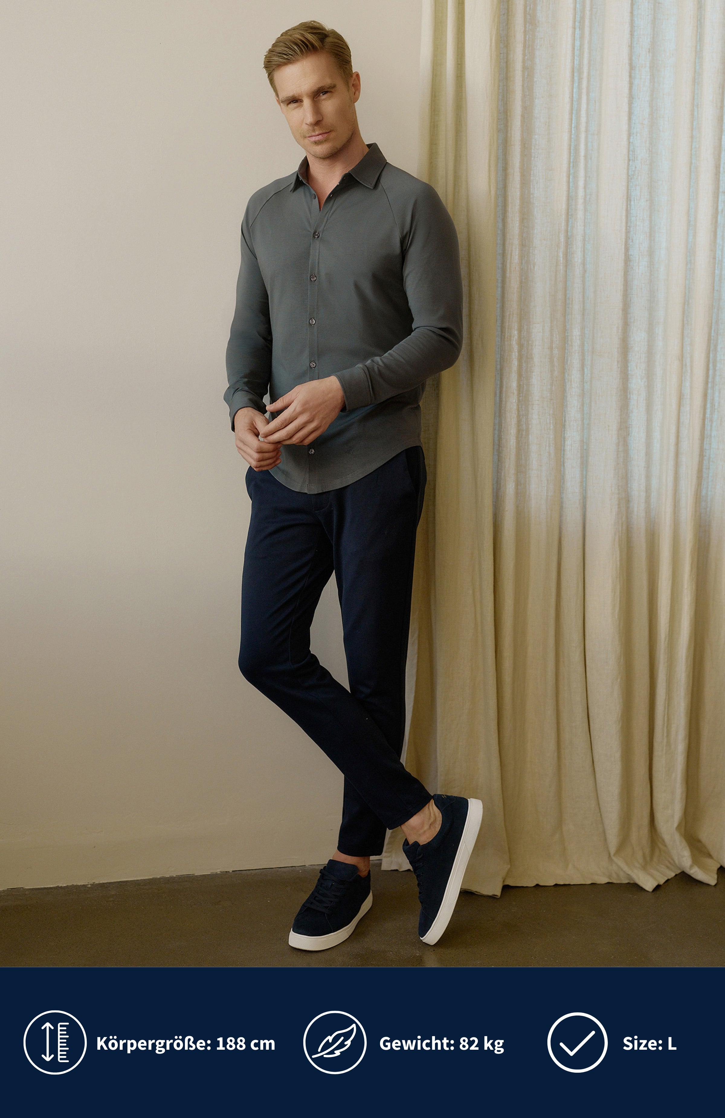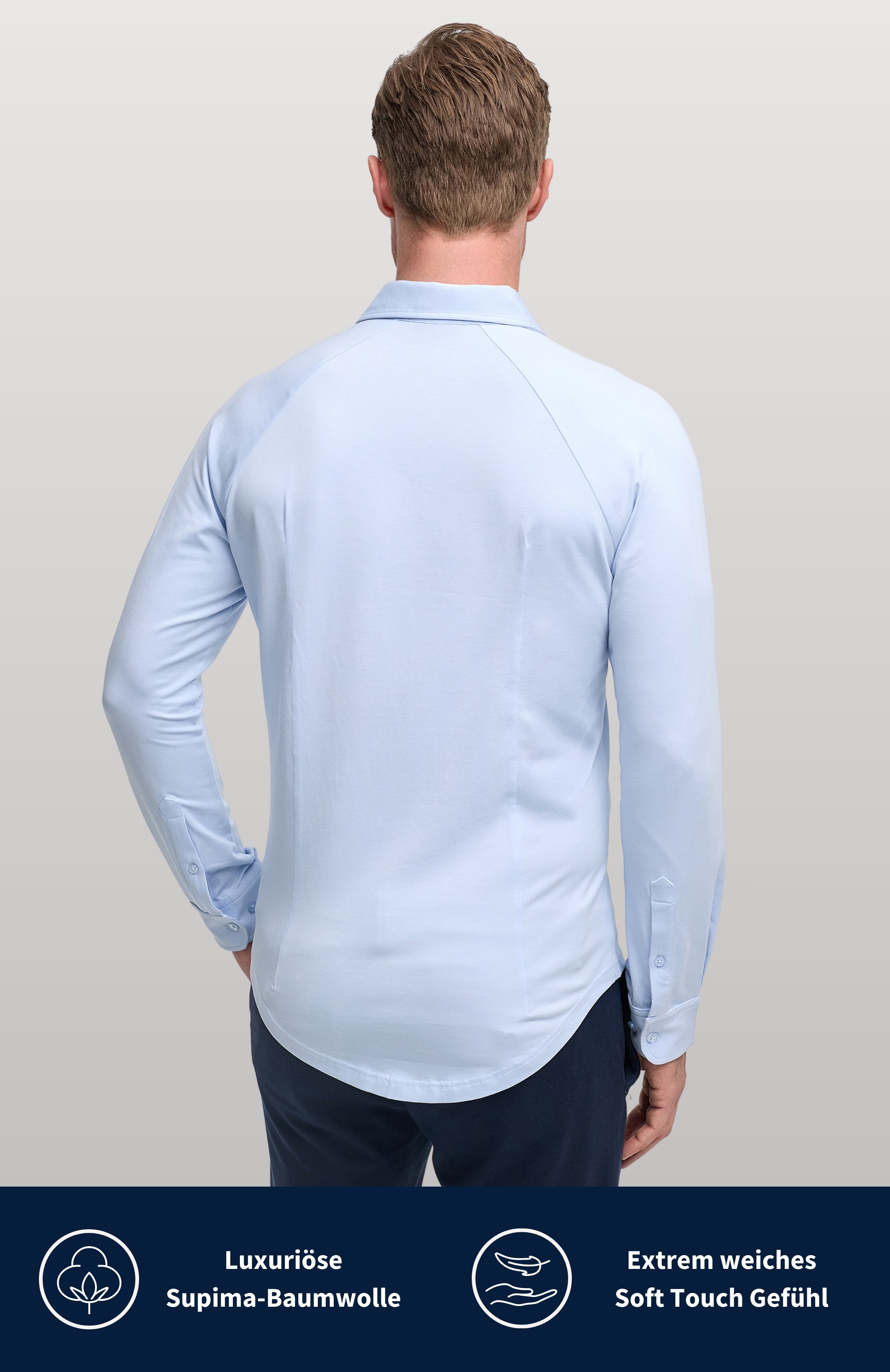 Unsere athletischen Jerseyhemden passen zu fast jedem Anlass. Ob beim Business-Meeting im Büro, im Homeoffice, auf einer stilvollen Hochzeit, bei einem spannenden Abend im Casino, beim romantischen Dinner mit deinem Date oder bei einem entspannten Bummel durch die City. Sie sind dein perfekter und bequemer Begleiter.